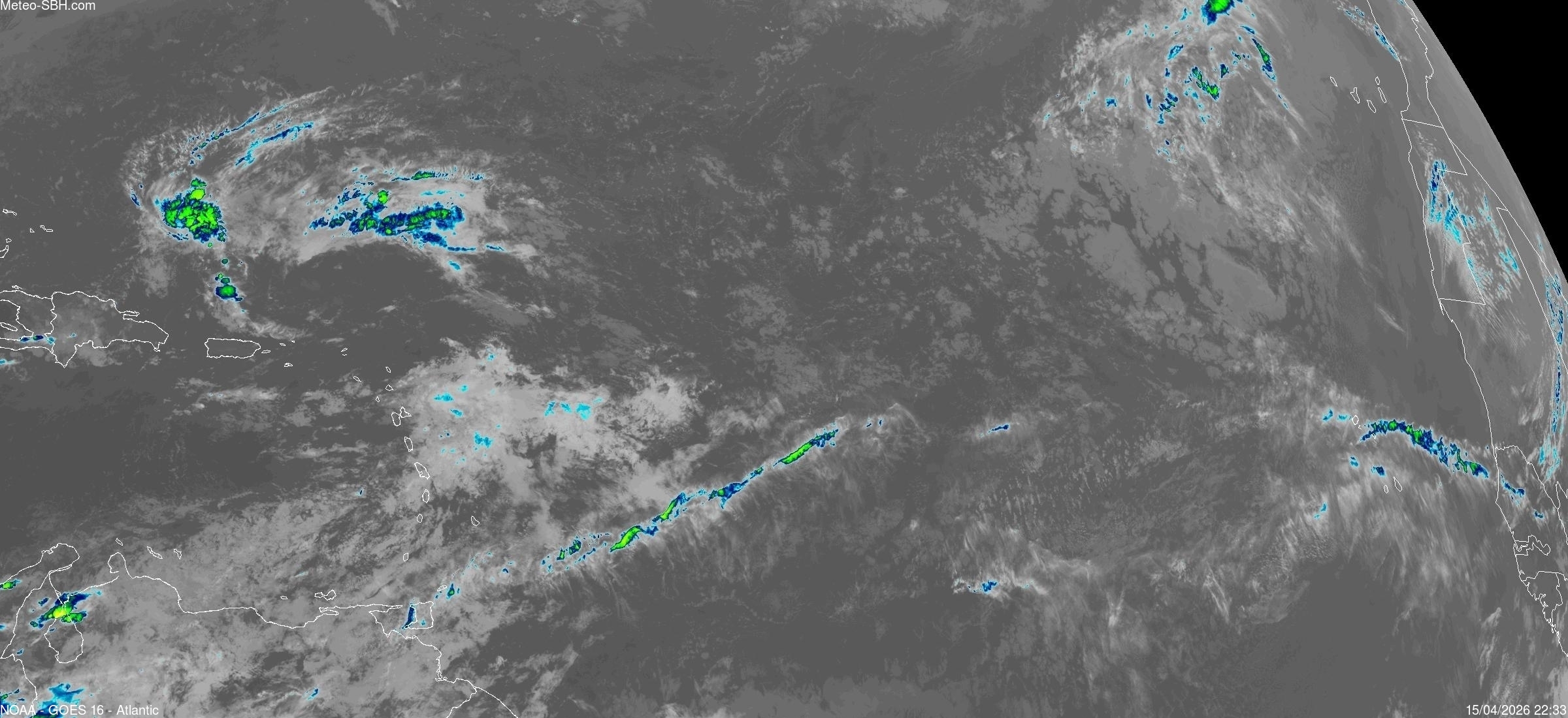 Imagerie Satellite dans l'infrarouge des Antilles - Cliquez ici pour l'animation