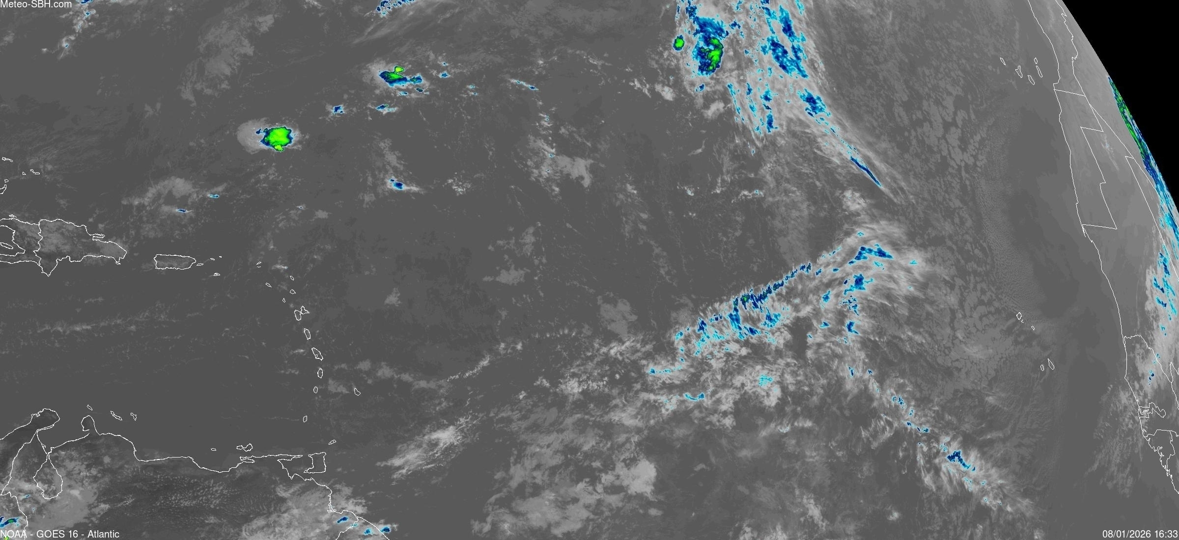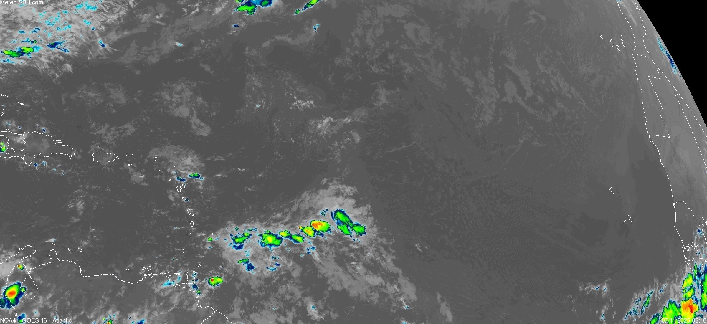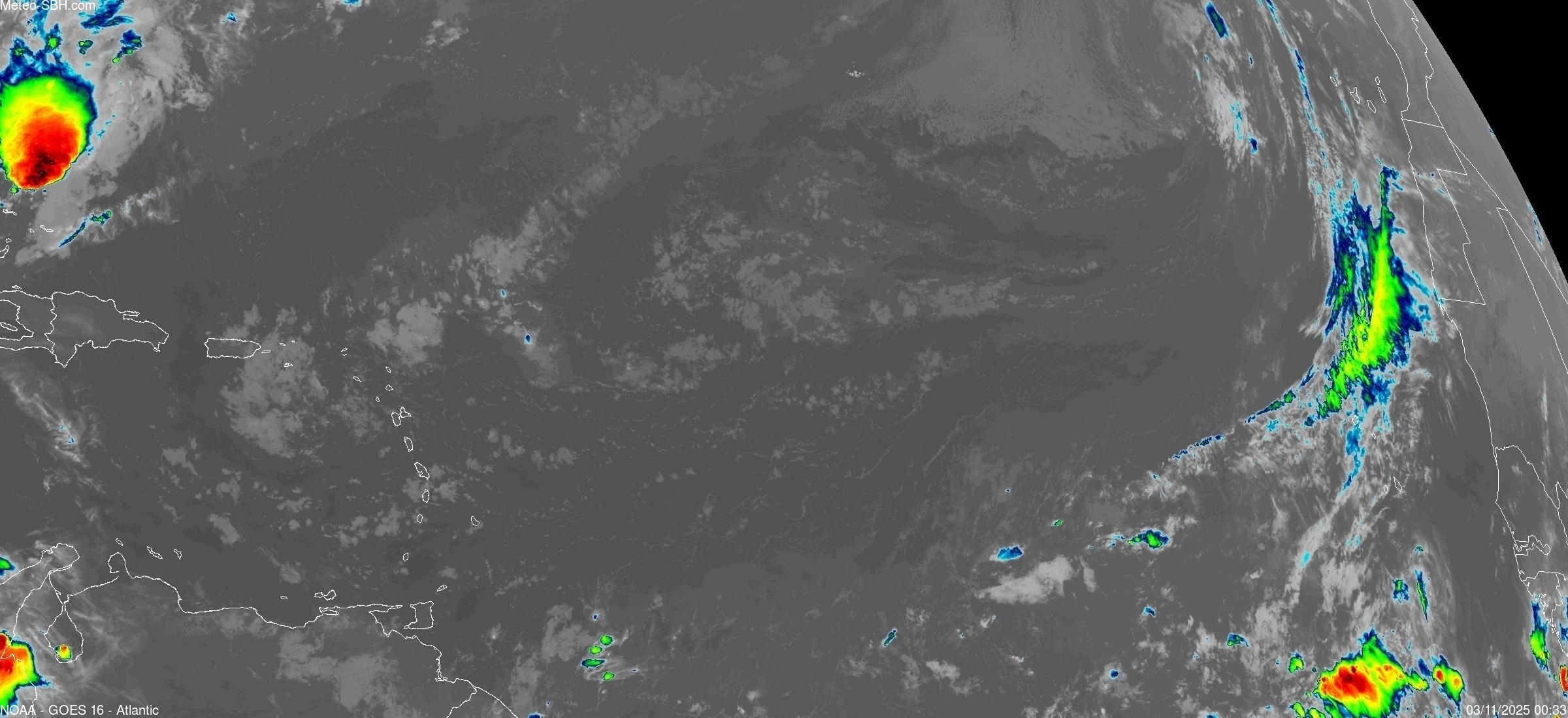Imagerie Satellite dans l'infrarouge des Antilles - Cliquez ici pour l'animation